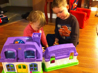 Here is a photo of Av and Kaiden checking out her birthday gift from us: